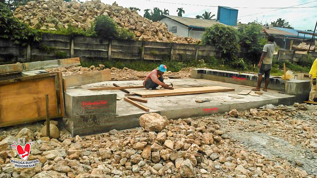 Rangkaian foto pengerjaan fondasi timbangan jembatan di lokasi