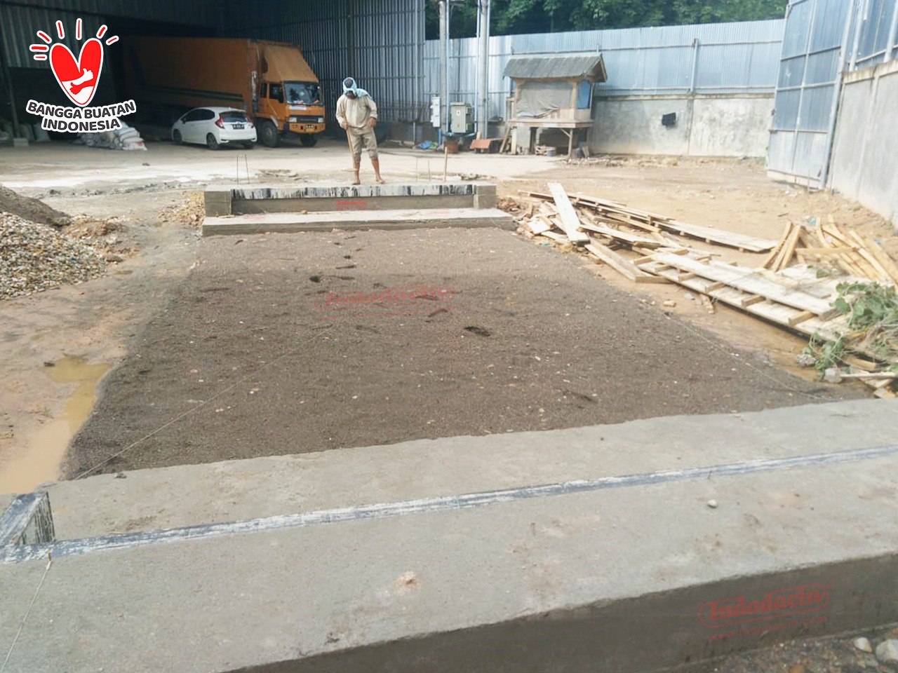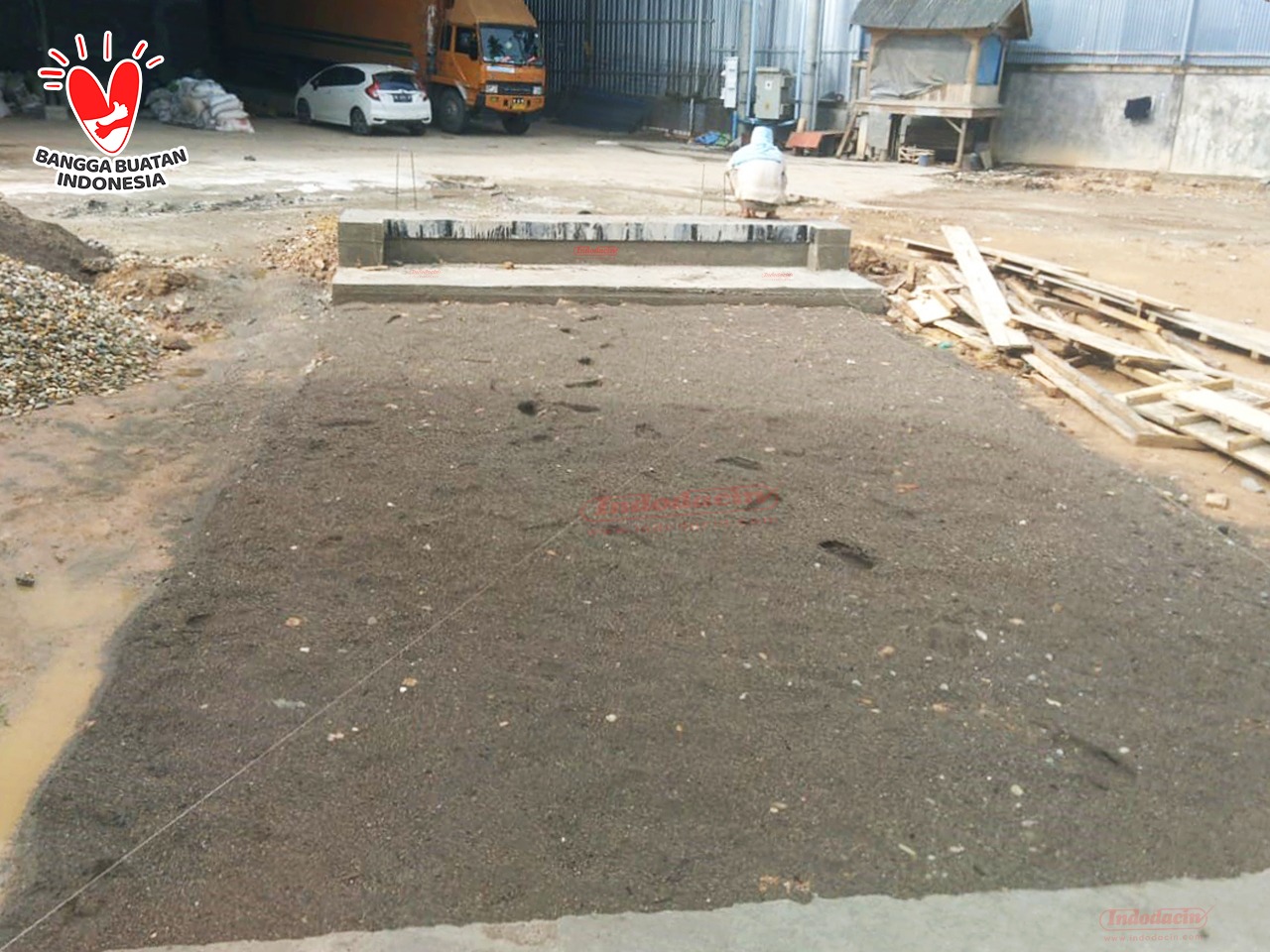 Baru selesai cor fondasi timbangan , sedang menunggu kering